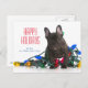 French Bulldog Puppy Tangled In Lights Holiday Postcard
