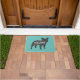French Bulldog Lover's Teal and Grey Welcome Mat. Personalize with your family name, Welcome, or delete the default text if you prefer no text at all. This cute Frenchie design makes a wonderful gift for a housewarming party, newlyweds, new pet parents and most any occasion. More colors are available. Visit Jenn's Doodle World for even more dog breed themed doormats and French Bulldog home decor.