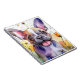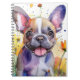 A digital art image of a French Bulldog with a playful expression, surrounded by vibrant and colorful flowers. The background features splashes of bright colors, giving the scene a lively and energetic feel.