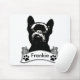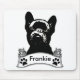 Stencil of a French Bulldog with banner to personalize with name or other text. Black and white. Customize background color.