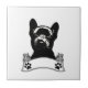 Stencil of a French Bulldog with banner to personalize with name or other text. Black and white. Customize background color.