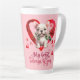 Show your love for your furry friend with this adorable latte mug. This ceramic mug features a cute watercolor painting of a French Bulldog with a red heart behind it , and a sweet message that says "My heart belongs to you" on the front. The back says "Happy Valentines Day" and includes a message and name that you can customize with your own making it a perfect gift for Valentine's day. It's a great way to enjoy your favorite hot beverage and express your affection for your loved one or your pup.