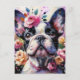 French Bulldog with Roses Impressionistic Painting Postcard