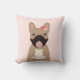French Bulldogs Smiling Flowers Pink Throw Pillow