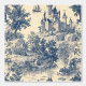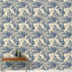"French Castle Toile de Jouy" vintage Wallpaper is a deep blue gray print on a shade of aged Ivory white. A traditional and classic look that is popular now as a Grandmillennial style that gives historical looks a fresh take.