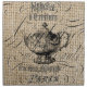 beautiful elegant Victorian teapot design with burlap background, french country burlap scripts tea party teapot home accessories for your country kitchen accents. Vintage english tea party favors for tea time.