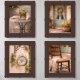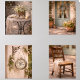 Bring timeless French country charm to your home with this romantic courtyard wall art set. The four coordinating prints feature a peaceful garden table with coffee and books, charming French doors with a floral wreath, a vintage hanging clock surrounded by flowers, and a rustic wooden chair draped with a linen throw. Styled together, the artwork tells a tranquil story of slow mornings, fresh flowers, and cozy outdoor moments.