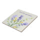 A tile featuring a painting of lavender with the words "lavandula angustifolia" in script on the tile.