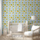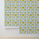 French Country Lemon Blue Floral Tile Pattern Wallpaper
