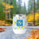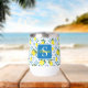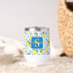 This wine tumbler features a unique Mediterranean-style pattern of French country tiles and lemons. It is easily personalizable with your name and monogram.