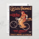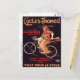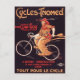 This image “Cycles-Tnomed” is a vintage French bicycle advertisement for ‘The Cowboy’ bicycles. It is a fun old poster featuring a man dressed as an American cowboy riding a bike. He is wearing chaps and has a pistol strapped around his waist. He is riding with one hand because he is holding a rifle in his other hand. J. Demont wants you to come to his place to shop because they have ‘everything for the cycle’.