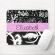 French Damask, Flowers, Black and White, Your Name Mouse Pad