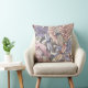 This lovely pink, gray, and lavender purple pillow features a lovely floral and dragonfly pattern. The subtle colors and swirling botanical patterns are reminiscent of vintage textile designers from the 1800s, such as William Morris, or else French farmhouse florals. This lovely pastel pillow would add retro panache to many styles of decor or else make a thoughtful gift.