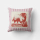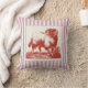 Great looking red and white pillow is an old fashioned throwback to a simpler time. The background has the look of ticking, and there's a country farmyard sheep in the center on the front. A wonderful addition to your cottage chic or Parisian country decor.