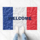 Flag of France design smooth fleece doormat for indoors or covered outdoor areas. You can customise this doormat with any text of your choice. Should you require any help with customising then contact us through the message link on this page. French flag design doormat.