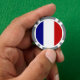 Poker chip featuring the French Flag with three vertical stripes of blue, white, and red. Fills the entire design area. Great gift for many occasions. Fun Hanukkah gift or stocking stuffer. Great for playing poker at family or friends reunions. Wonderful for celebrating Bastille Day, too.