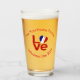 Fun drinking glass or stein for Valentine's Day featuring a heart shaped flag France. It is used to create the O in the word LOVE. The other letters are red. Above, in red letters, are the words THE YOUR NAME FAMILY. Change that to any text you like. Below are the words VALENTINE'S DAY 20??. Change the year. Or, change the text to whatever you wish. Great gift for a housewarming. Fun way for French people to celebrate their love of their heritage at Bastille Day or a family reunion, too.