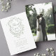 French Floral Sage Green Crest Wedding Photo Thank You Card