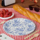 French floral toile blue paper plates