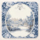 French floral toile blue square paper coaster