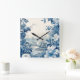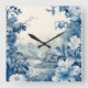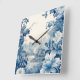 French floral toile blue square wall clock