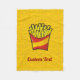 Cartoon illustration of small pack of french fries. Junk food outline icons yellow pattern background. Custom text.