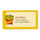 Cartoon illustration of small pack of french fries. Junk food outline icons yellow pattern background. Custom text.