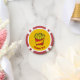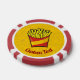 French fries icon. Junk food outline icons yellow pattern background. Custom text on both sides.