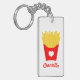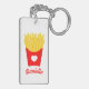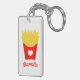 Express your love for fries with the French Fry Love Keychain designed by Enchantfancy Design Company. This fun design features a red fast-food style fry container decorated with a white heart and filled with yellow french fries. Personalize with your choice of name in red text. It makes a great gift!