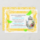 French Garden Tea Party Invitations on the front feature a pretty vintage French frame in yellow, green butterflies, and an antique teapot adorned with roses. The back has a damask pattern in yellow.