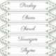 Fines herbes (Fine Herbs) is an equal mixture of finely chopped fresh herbs and is added uncooked to salads or at the end of cooking in omelets or sautéed fish or chicken, for instance. Marjoram and watercress are also considered fines herbes. These garden stickers--measuring under 2" long and a little bit under 1/2" wide, are perfect to place on top of standard white plastic garden labels, eliminating the need for you to hand-write plant names onto your label with a pen or marker that might wear off in the sun or rain. Font used for these editable label names is Parisienne. Don't be fooled by their modern look - the border design is over a century old!