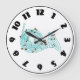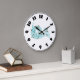 For any one into music or playing an instrument this design of a french horn is perfect. The design has a french horn with musical notes over it. The french horn is see through and is done in a light blue color. This french horn design looks great on this clock. Perfect for yourself or as a gift