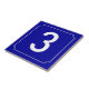 Patterned after French street signs and address numbers. Narrow white border with reverse circle filets at the corners. Dark blue background. Ceramic number tiles. You customize with the numbers or letters you need for your ceramic tile or mosaic sign. Number tile for weather proof signs, house numbers