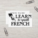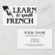 Cool vintage Learn To Speak French business cards in black and white but you can change the background to any color you like! French language Instruction business cards.