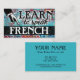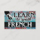 Colorful arty Learn To Speak French business cards in turquoise, aqua, red, yellow. French language Instruction business cards.
