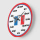 A great idea for French teachers and students of the French language! Wall clock has the written words for the numbers 1-12. Around the center reads the question "What time is it?" in French (Quelle heure est-il?). Hang it in the library, den, beach house, or office. This clock would make a unique housewarming or boatwarming (or houseboat warming) gift. Available in two sizes of round clock, or a square clock. Copyright Scarebaby Design.