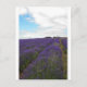 a field of commercially grown lavender almost ready to harvest against a blue sky