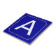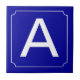 Patterned after French street signs and address numbers. Narrow white border with reverse circle filets at the corners. Dark blue background. Ceramic number tiles. You customize with the numbers or letters you need for your ceramic tile or mosaic sign. Number tile for weather proof signs, house numbers