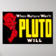 When Nature Won't, Pluto Will. Advertisement for a popular laxative mineral water from the 1920s. Bottled at the spring source in French Lick, Indiana. Pluto Water was a sulphur mineral water that smelled like rotten eggs.