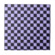 A checkerboard pattern with alternating lavender and black squares fills the image. The repeating geometric design gives a balanced and rhythmic appearance.
