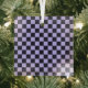 A checkerboard pattern with alternating lavender and black squares fills the image. The repeating geometric design gives a balanced and rhythmic appearance.
