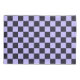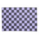 A checkerboard pattern with alternating lavender and black squares fills the image. The repeating geometric design gives a balanced and rhythmic appearance.