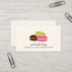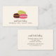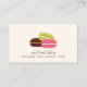 Custom business card design features a cute illustration of 3 french macaron cookies.