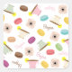 A sticker featuring a print of tea cups, French macarons, and anemone flowers with "Bonjour" text.