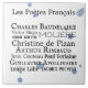 Les Poètes Français is a composition using typography, of well-known French poet names, including some of the most famous famous poets of all time. Black text on a white background, accented with blue leaves. A literary addition to your tile collection.