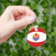 The flag of French Poly. has been deftly fitted to the circular fob of this keychain. A handy reminder of French Polynesian heritage.