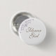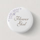 Classic French regency purple fleur de lis pattern, flower girl script font in dark taupe, button. The perfect addition to the flower girl gift tote bag. Designed to match our French Regency Purple Fleur De Lis Wedding Collection.