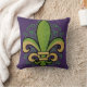 New Orleans French quarter purple and green fleur-de-lis polyester throw pillow