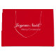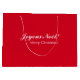 A red gift bag in French and English languages wishing merry christmas. The red used on this bag is a Christmas red color making it very festive and Christmassy!