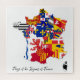 This design features the map of France, divided into the countries regions, with the flag of each region combined, to make an eye-catching and colorful mosaic style design.